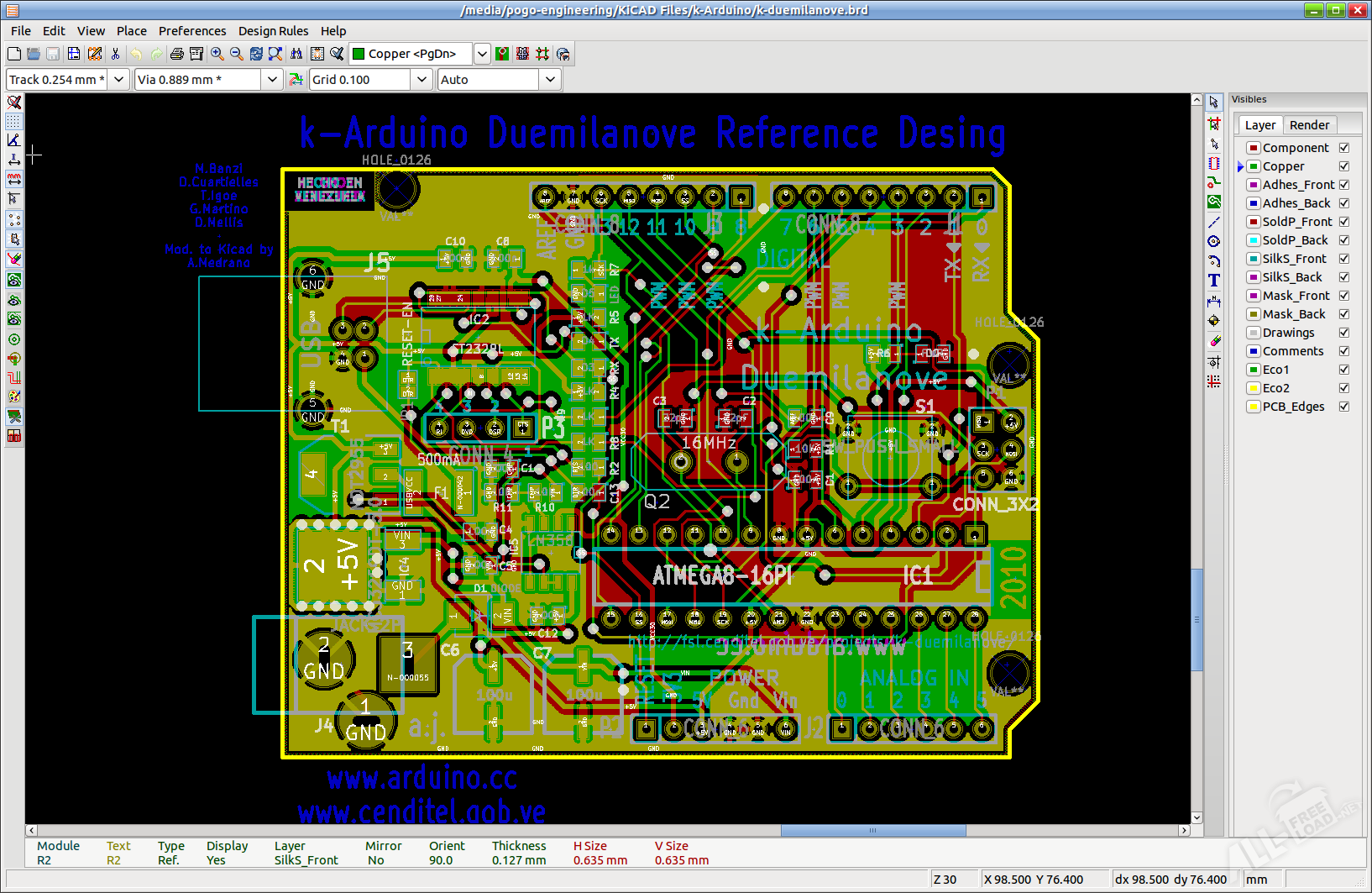 Kicad не отличается простотой интерфейса, его трудно использовать без надлежащей документации. Особенно сложно пользоваться английской версией приложения. Вы можете Kicad скачать на русском языке, что облегчит задачу по его освоению. Основные части приложения включают в себя менеджер проектов, eeschema и pcbnew. С помощью менеджера проектов можно создавать новые работы, а также настраивать их параметры. Eeschema — редактор для проектирования многолистовых схем. Он проверяет их на соответствие нормативам и создаёт перечень входящих элементов. Eeschema позволяет сохранить проект в формате Spice, для его симуляции в сторонней программе. Pcbnew – редактор печатных плат, работающий с изделиями, содержащими 16 медных и 12 технических слоёв. Модуль включает в себя удобный редактор посадочных мест.