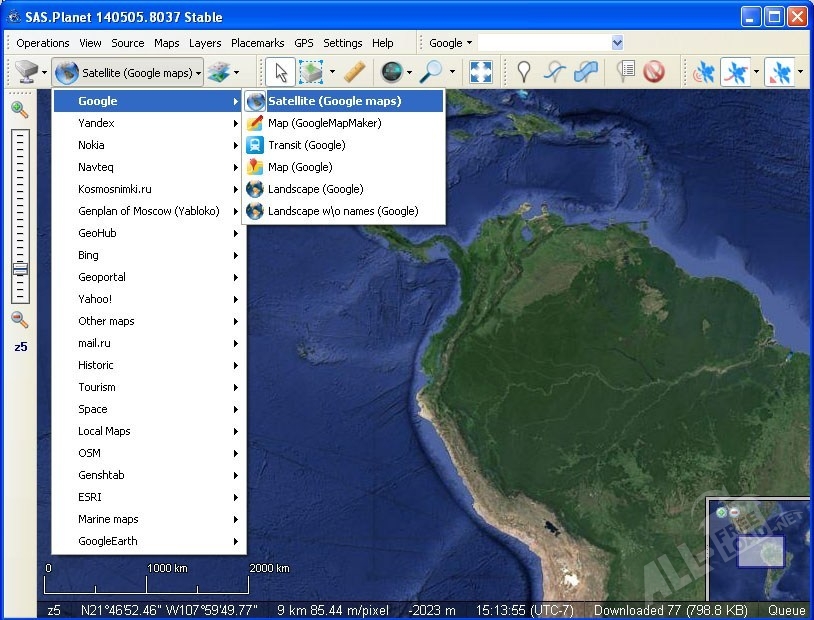 Sas. Планета – приложение для Windows , чтобы составлять маршрут и осуществлять просмотр местности через сеть (и не только). Необходимо скачать Сас. Планета на компьютер и выполнить подключение к сети. Далее выбранный участок можно сохранить отдельно и просматривать в любое время без доступа в интернет. Приложение сохраняет файлы в популярных графических форматах Виндовс. Потом их при необходимости можно редактировать в специальных программах. Данные о местности предоставляются от следующих сервисов: Google Maps, Яндекс. Карты, Yahoo Maps и др. Переключение между типом карты происходит в одно нажатие, и далее страница обновляется автоматически.