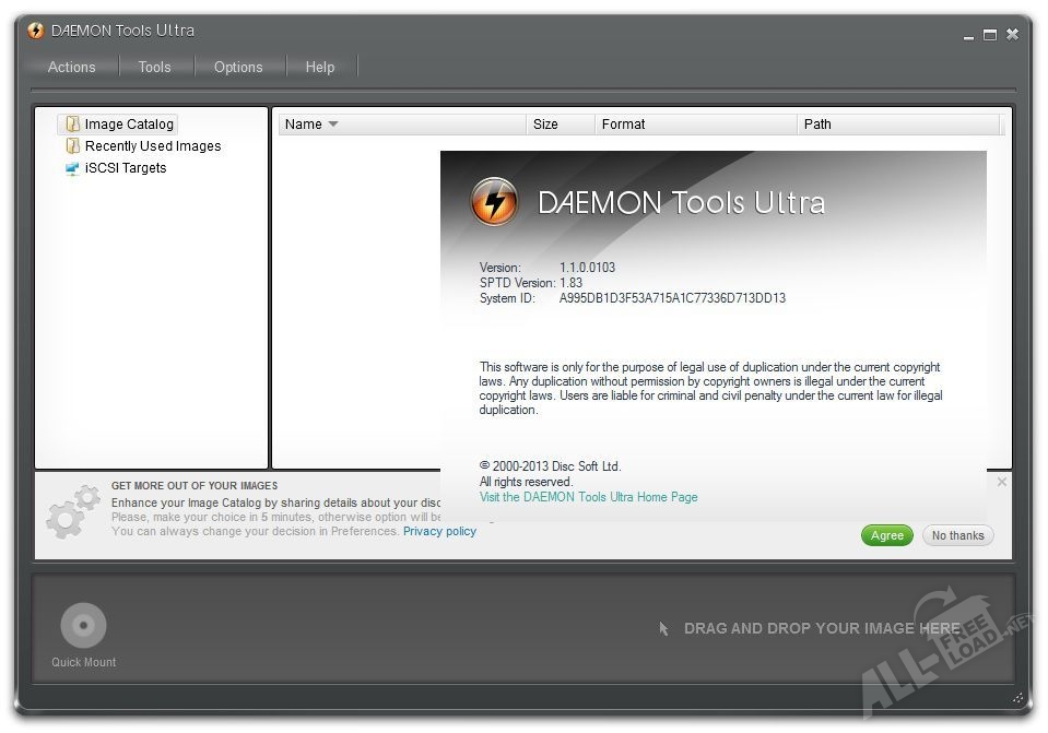 Стоит отметить, что скачать Daemon Tools Ultra можно одним файлом сразу на х32 и х64 бита. Функциональная особенность от аналогов заключается в том, что приложение работает с самыми популярными форматами и файловыми системами. Может использоваться для резервного копирования данных с диска и создавать локальные хранилища. Этот софт весьма популярен для Windows и подходит как новичкам, так и профессионалам. Данные копируются с диска все ─ даже скрытые файлы, которые недоступны при обычном методе. Готовые образы можно сжать максимально эффективно и хранить на выбранном месте. Утилита определяет и все приводы, подключенные к локальной сети.