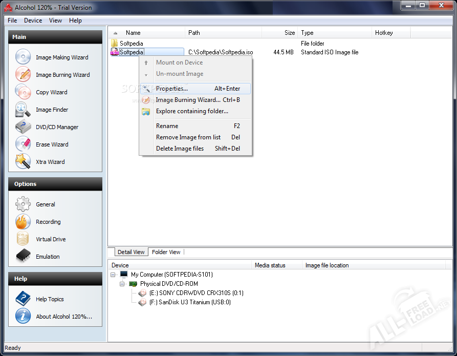 Несомненно, alcohol 120 скачать бесплатно – это получить возможность копирования на HDD-жёсткий диск компьютера точную цифровую копию образа диска DVD или CD, причем абсолютно даром. Последующие действия с данной программой позволяют подставлять необходимый образ в Ваш виртуальный дисковод.