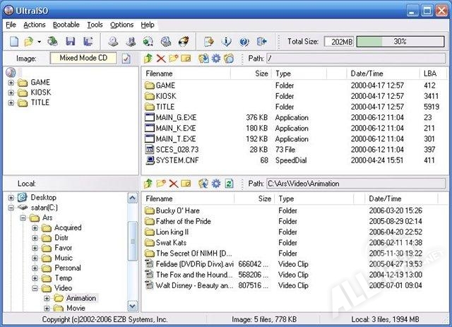 UltraISO — программа, предназначенная для работы с файлами-образами. Несмотря на свои небольшие размеры и низкие требования к ресурсам, данный софт позволяет проделывать широкий спектр операций с самостоятельно смонтированными и преобразованными с CD и DVD дисков образами.