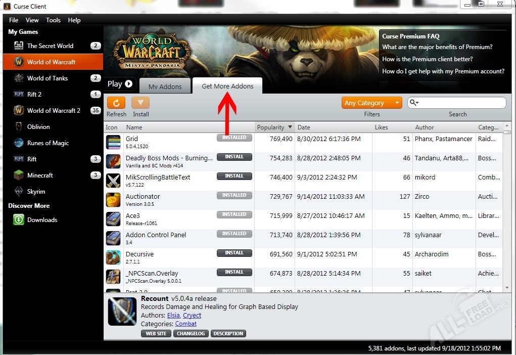 Удобнее скачать Curse Client, чем использовать ряд других приложений. В настройках указываются наиболее популярные онлайн стратегии, гонки и аркады. Можно задать период поиска обновлений, старт клиента и другое, что обеспечит комфортное использование.