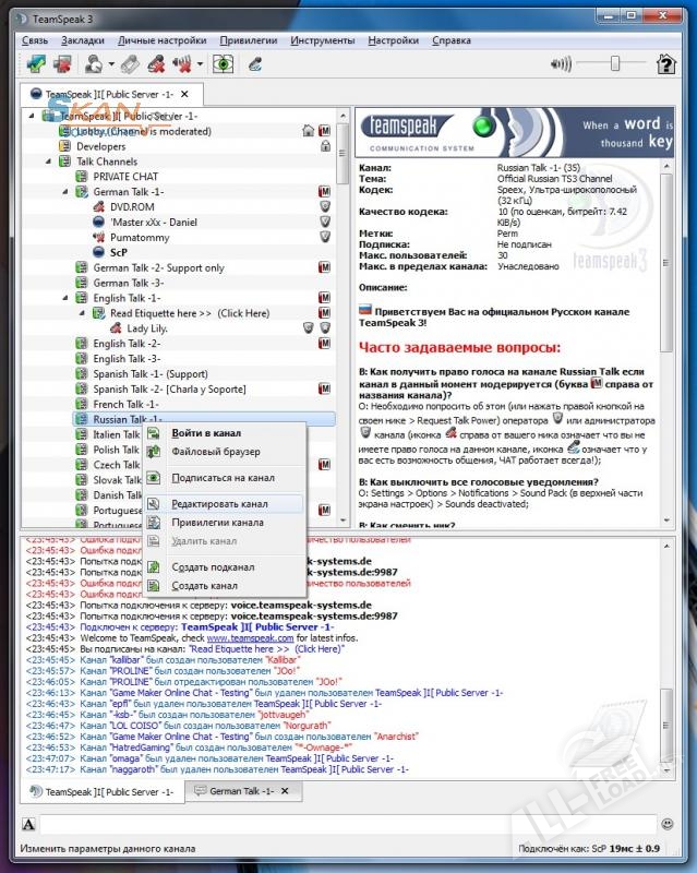 В интернете есть достаточное количество сайтов, где можно TeamSpeak скачать бесплатно, но лучше воспользоваться проверенными, не представляющими угрозу заражения вирусами. Программа TeamSpeak русифицирована.