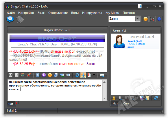 Многофункциональный чат от компании Bingo's Soft стал популярным благодаря тому, что распространяется на бесплатной основе, и разработчик регулярно выпускает новые, более надежные версии этой программы.
