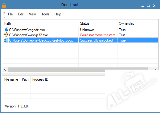 В чем особенность программы? Случается, что файл нельзя удалить или скопировать, если он используется другим процессом, или произошел сбой в системе; стандартные функции недоступны, не помогает и перезагрузка. Поэтому необходимо скачать бесплатно Deadlock для Виндовс и иметь ее про запас. Она может разблокировать как сам процесс, так и все дерево (например, если на текущей момент используется файл не одной программой). При этом не нужно перегружать систему или закрывать все приложения. Русская версия очень удобна в использовании и понятна на интуитивном уровне даже новичкам.