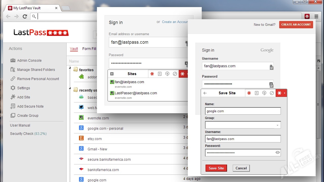 Информация в диспетчере LastPass для Firebox зашифровывается на компьютере пользователя и снять шифр можно лишь зная определенный, предварительно заданный пароль. С помощью Password manager вы можете не только сохранять данные о паролях, а и импортировать раннее созданные, передавать их по безопасным каналам и хранить важную информацию. LastPass для Chrome и других браузеров позволяет проверять пароли на надежность и включает в себя специальную защиту от программ-клавиатурных шпионов.