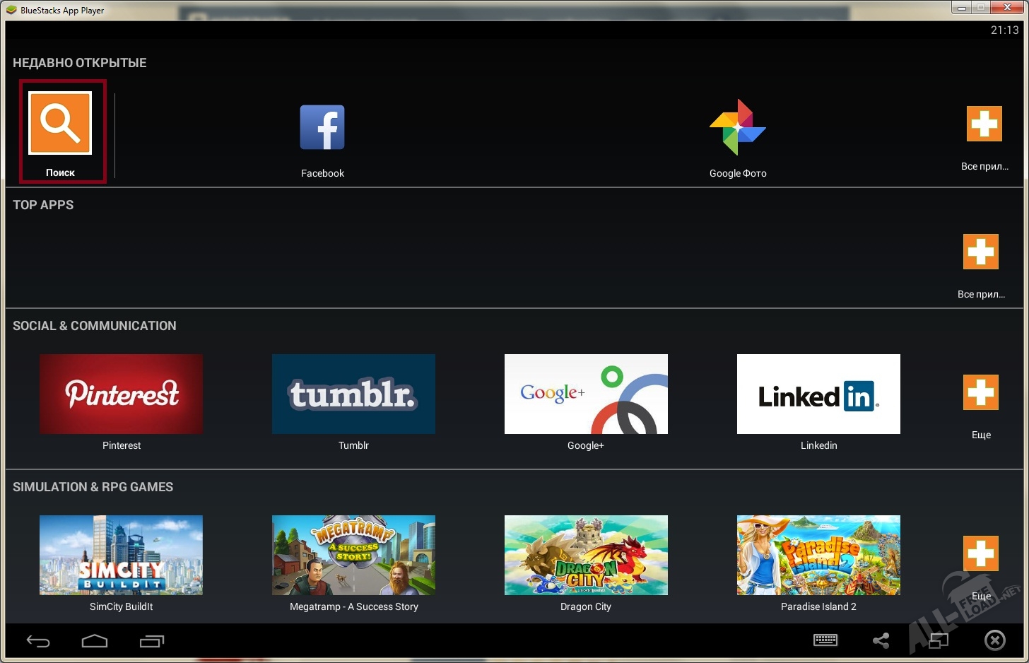 Если в случае с мобильными платформами все прозрачно, то на Виндовс программа официально не ориентирована и в этом нам поможет установка эмулятора BlueStacks, который способен открывать файлы формата .apk.