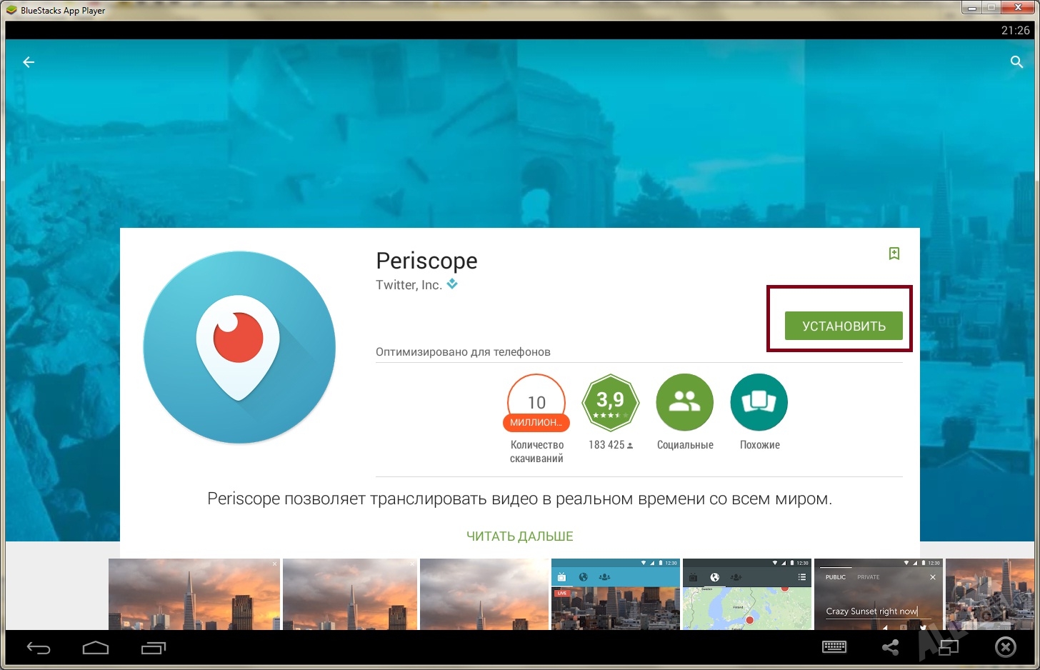 Шаг 8. После ввода персональной информации и поискового запроса оказываемся на страничке программы, чтобы скачать перископ на компьютер бесплатно требуется нажать на ссылку Установить.