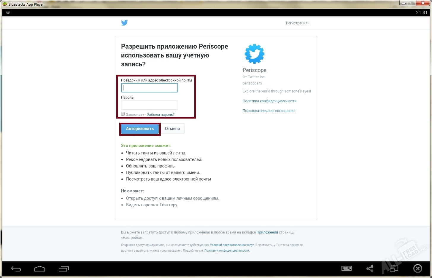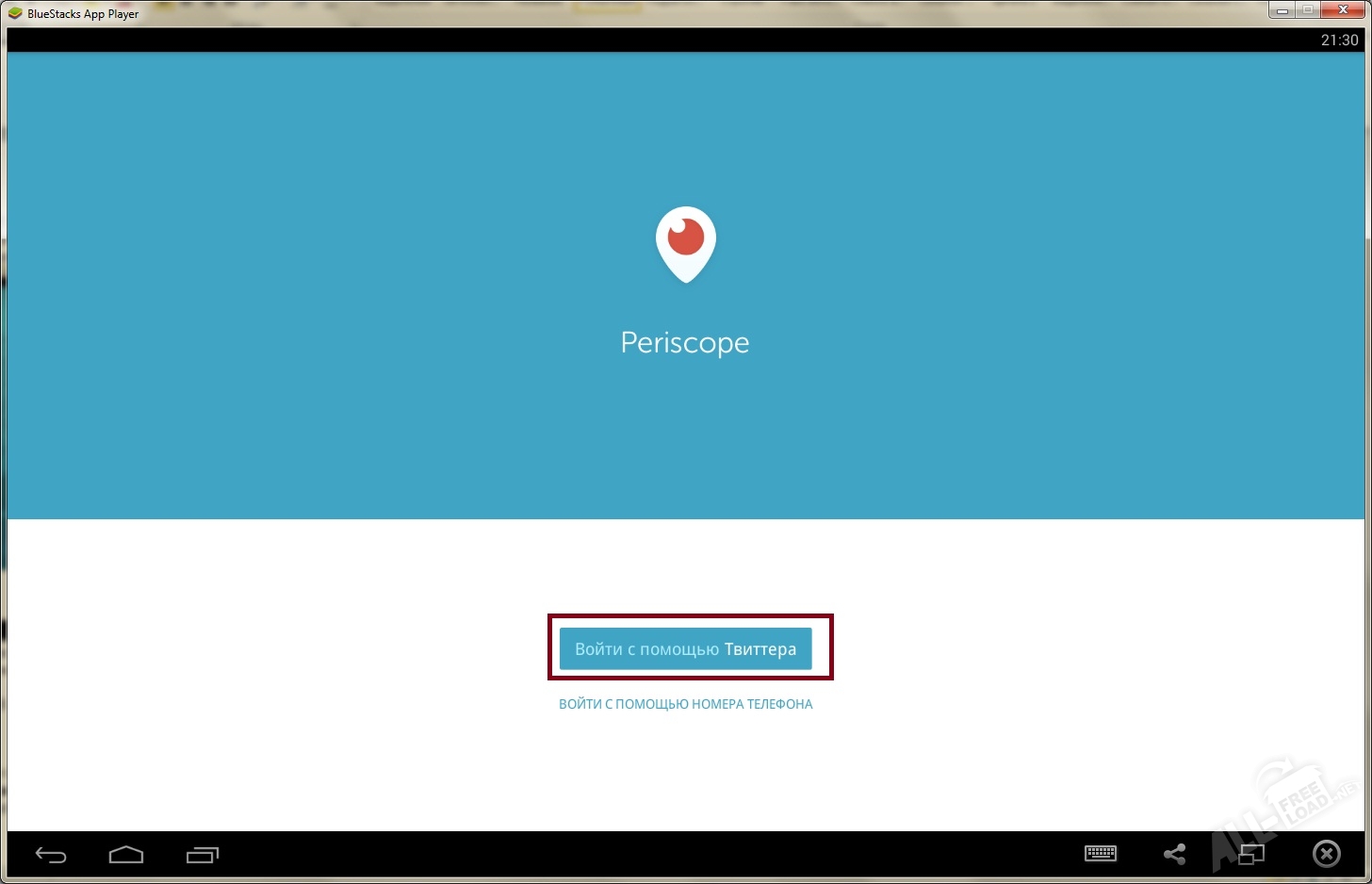 Шаг 9. Как и в случае с портативными устройствами надежнее всего привязать программу к учетной записи Twitter, с помощью специальной кнопки. Если нет Twitter, просто вводим свой номер мобильного телефона