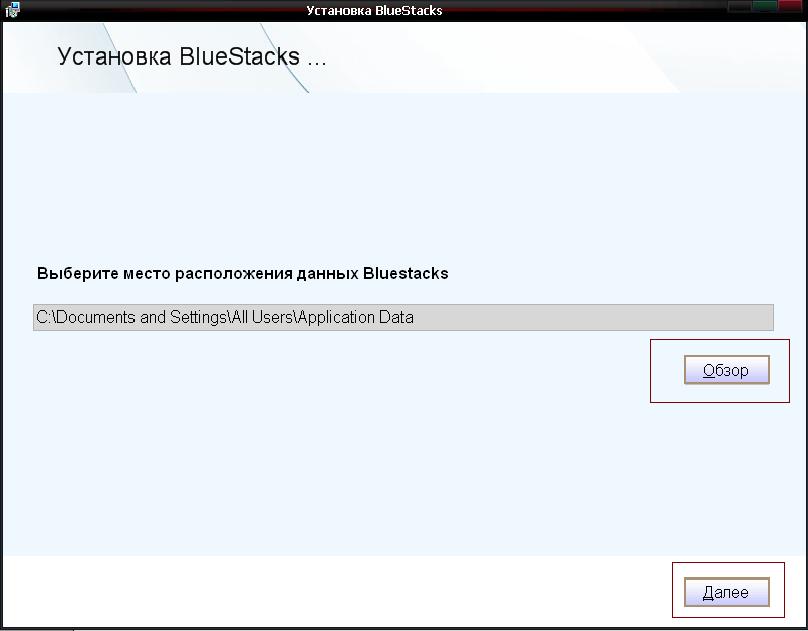 Шаг 3. С помощью клавиши Обзор устанавливаем директорию, в которой будет находиться эмулятор, после чего нажимаем клавишу Далее.