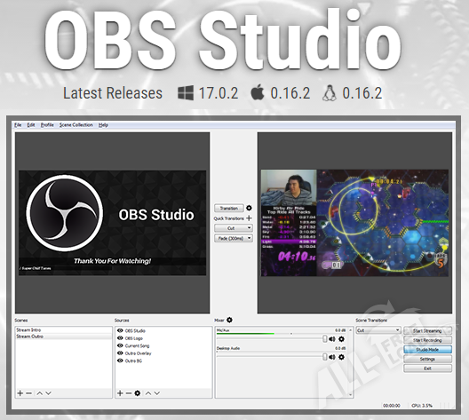 Помимо передачи данных в режиме реального времени, программа может записывать все действия с рабочего стола, работать без подключения к сети, после чего файлы доступно быстро и удобно отредактировать: перекодировать в другой формат, уменьшить в размере, убрать лишнее или наложить эффекты ─ одним словом, все то, что используют игроки или при монтаже. Больше не нужно запускать сразу пять программ ─ достаточно лишь скачать ObsStudio на русском языке. Запись происходит в формате MP4 и FLV, используется H264 кодек.
