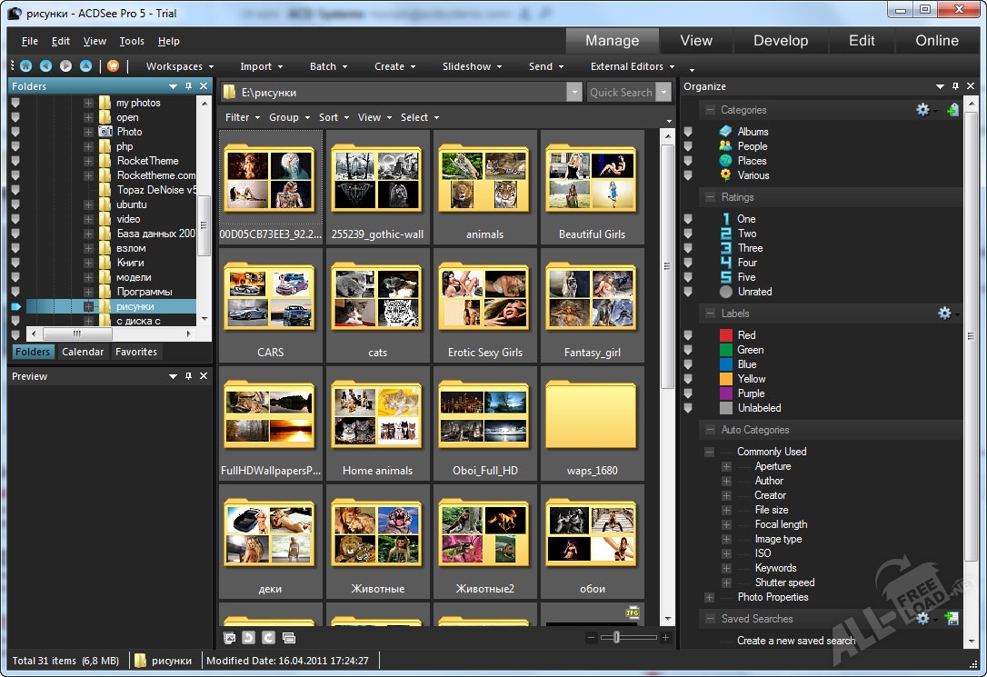 Исключительные практические и интеллектуальные возможности ставят программу в один ряд с крупнейшими графическими редакторами. На сайте предоставлена возможность скачать ACDSee для всех желающих, на русском, и английском языках