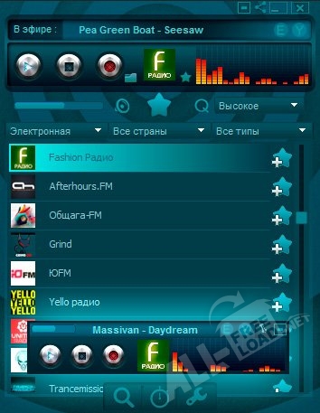 Программный продукт ПСРадио обладает инструментами, открывающими доступ к большому числу радиостанций в интернете. Каталог онлайн-ресурсов постоянно обновляется и дополняется. Отличием приложения является возможность качественного прослушивания радио при маленькой скорости интернет-соединения. В радио-проигрывателе присутствует функция записи онлайн-эфира на компьютер с возможностью быстрого разделения аудиофайла на отдельные треки. Широкополосный эквалайзер позволяет самостоятельно настроить параметры звука, а встроенный будильник позволит пользователю начать новый день с любимой радио-волной. Среди прочих функций приложения стоит отметить возможность создания плей-листов и списка избранных радиостанций.