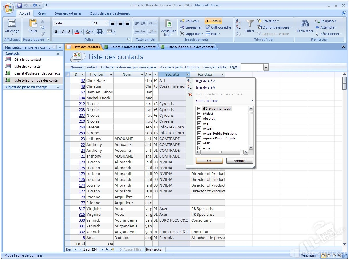Microsoft Access – программа, осуществляющая контроль за базами данных. По своей сути, приложение является системой ведения информации без потребности в создания отдельного сервера. Простой алгоритм установки и оптимальные требования прекрасно совмещены в программе, а МС Аксэсс 2007 скачать можно бесплатно. Несмотря на свою простую структуру, программу рассматривают не только с целью обучения простым азам СУБД, но и в ряде случаев, связанных с практическими целями. Основная сфера применения программы – предприятия и организации. Ms Access для Windows отлично справляется с функциями упорядочивания информации, а автоматическая система помогает вести учет небольших блоков данных и обеспечивает сразу несколько подключений. Отдельной темы заслуживает оформление макросов в программе, что дает возможность создавать настоящие пользовательские приложения для работы с блоками данных.