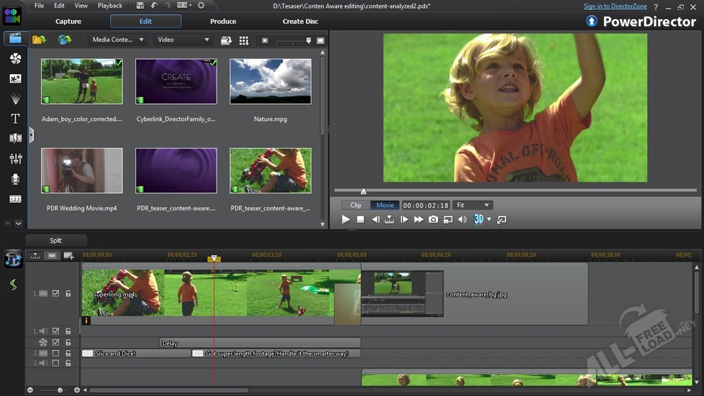 Программное приложение Cyberlink PowerDirector обладает мощными инструментами для обработки и редактирования мультимедийных файлов самых разнообразных форматов. Благодаря встроенным компонентам приложения можно без проблем создавать профессиональные видеоматериалы. В программе Киберлинк Повер Директор реализованы специальные технологии ATI и NVIDIA, предназначенные для более качественной обработки видеофайлов. Также стоит отметить наличие функции "PiP", огромной коллекции переходов и всевозможных эффектов и мощные инструменты для создания интерактивного меню дисков.