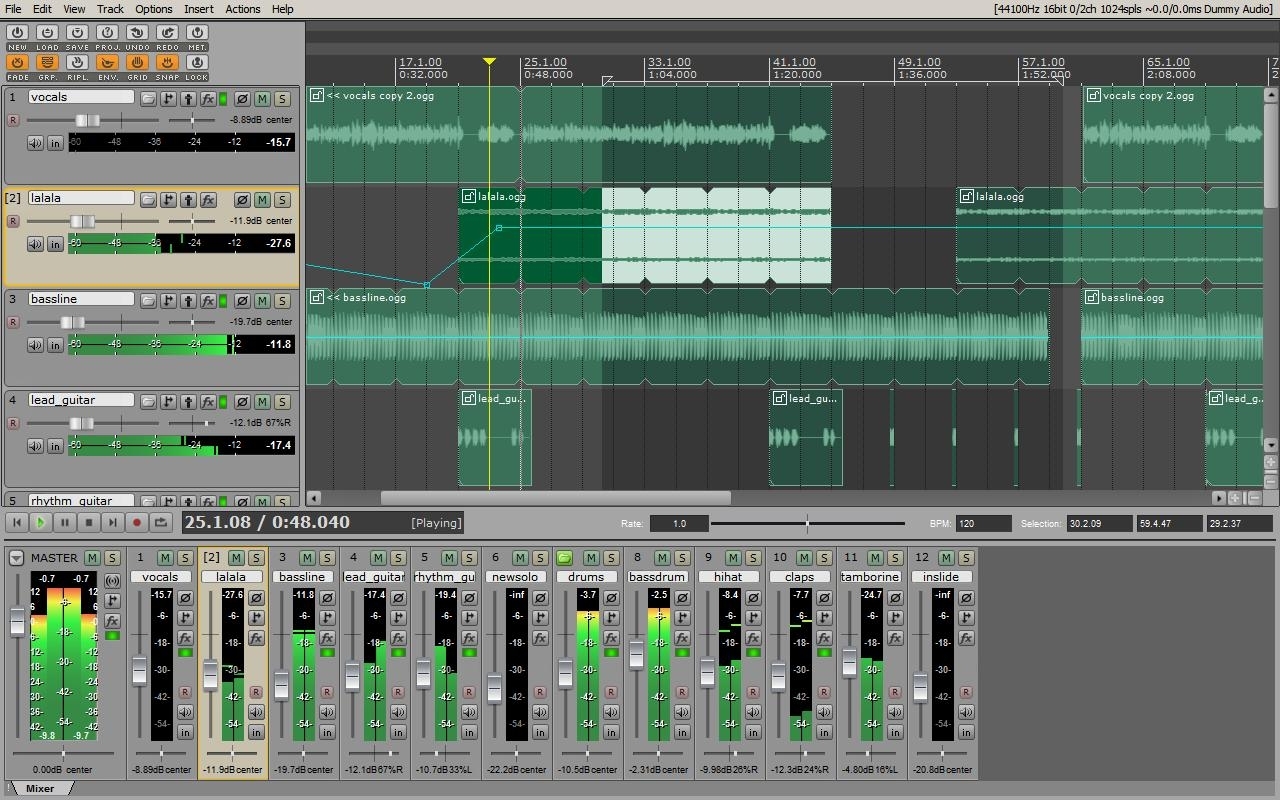 Поддержка плагинов VST и технологии ReWire, корректировка звучания по высоте тона, изменение длины аудиофрагмента на временной шкале, удаление треска и шумов – вот далеко не полный список специальных функциональных возможностей этой утилиты.