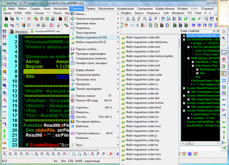Akelpad может функционировать не только в стандартном SDI (одно окно – один документ), но и в мультиоконном MDI режиме, имеет неплохой объем функций, к тому же дополнительно расширяющийся за счет использования плагинов, предоставляет возможность настроить шрифт и заливку фона, корректно показывает псевдографику и по быстродействию не уступает аналогичным утилитам. Используя эту программу, файлы, ограниченные пометкой «только для чтения», можно редактировать и предварительно просматривать.