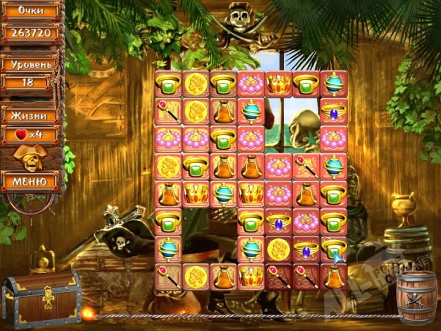 Остров сокровищ – это великолепное развлечение, которое не оставит ни одного любителя логических головоломок равнодушным. Тебе предстоит принять участие в поисках настоящих пиратских сокровищ, но для этого придётся серьёзно постараться, чтобы добраться до них. Передвигай фигуры и составляй из них одноцветные ряды минимум из трёх элементов, чтобы подобраться как можно ближе к заветной цели. Привлекательная графика и элементы аркады отлично дополняют эту логическую игру, создавая неповторимую смесь, которая понравится всем любителям приятного времяпрепровождения за компьютером. Рекомендуем скачать игру Остров сокровищ, так как это одна из наиболее привлекательных игр этого жанра!