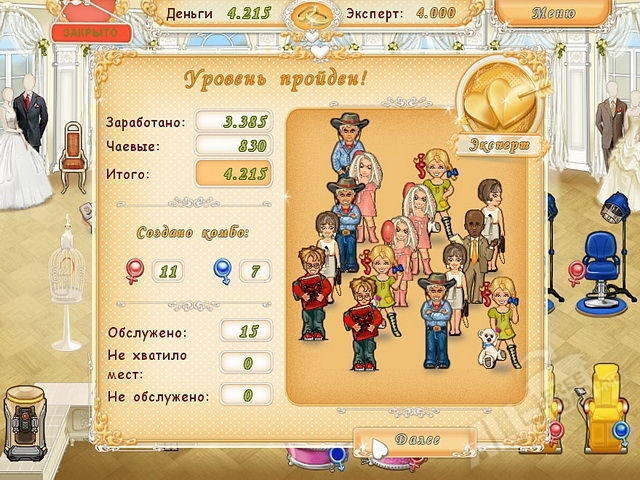 Свадебный салон – увлекательная игра, развитие которой происходит в месте, куда обращаются многочисленные покупатели и клиенты. Задача пользователя - выполнить все просьбы покупателей, помогая выбрать наряды, подарки и детали интерьера. Скачать игру Свадебный салон могут пользователи, которых привлекают игры-симуляторы, создающие уникальные локации и условия для увлекательного игрового процесса.