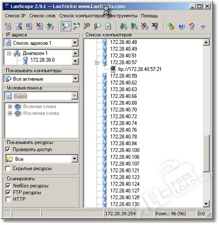 Приложение LanScope предназначено для поиска компьютеров, находящихся в локальной сети. При сканировании происходит получение подробной сетевой информации обо всех компьютерах, куда входят такие данные, как: PING, имя домена, MAC-адрес, имя NETBIOS, а также другие данные. При этом задаваемый диапазон для сканирования IP-адресов практически никак не ограничен. В качестве параметров поиска могут указываться имена, как одного, так и нескольких компьютеров. В результате успешного сканирования в окне программы LanScope будет выведены все данные о найденных удалённых компьютерах.