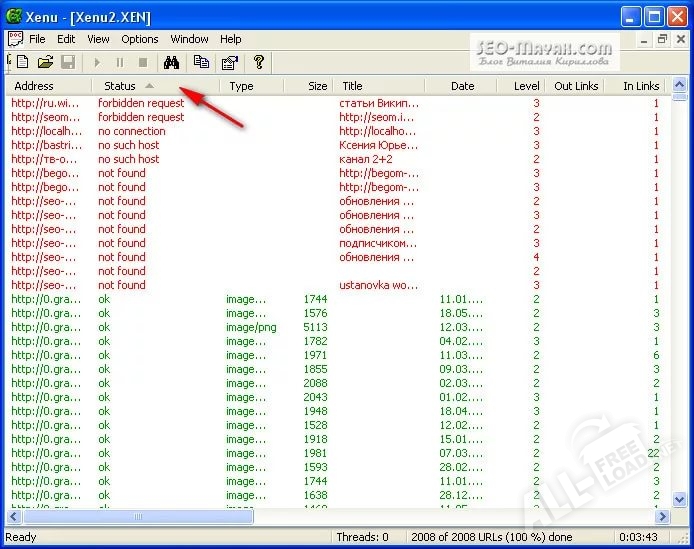 Преимущества перед аналогами весомые. В первую очередь, это быстрая обработка данных. Далее проверяются картинки, ссылки, модули, фреймы, таблицы, графические карты и т.д. После изменения одной или нескольких страницы всегда могут оставаться несостыковки или возникать неполадки в работе. Поэтому актуальнее и быстрее скачать Xenu на компьютер, а далее уже работать с сайтом. Сохраняются также и результаты сканирования. Это позволяет продолжить работу с того места, где пользователь остановился. В процессе работы все элементы отмечаются отдельными цветами: серым – сейчас проверяется; красным – ссылка недоступна; зеленым – находится в режиме работы. Таким образом, можно сразу узнать, есть ли проблемы на странице сайта, и как их можно исправить.