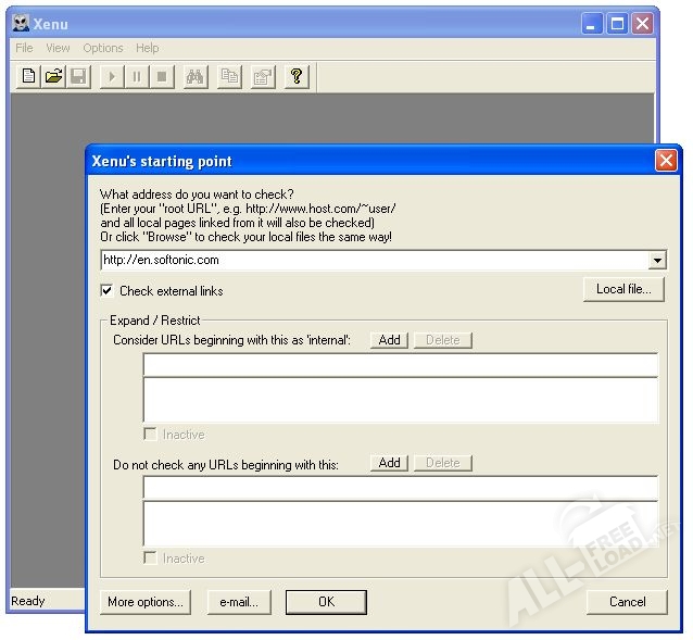 Xenu – удобная утилита для поиска неисправных ссылок, отсутствия картинок на сайте, блокируемых модулей и много другого. Отличием от аналогов является то, что процесс сканирования затрагивает как внешние, так и внутренние элементы, благодаря чему можно исправить неверный код и вернуть работоспособность элементов. Для начала использования необходимо скачать Хену одним файлом по прямой ссылке и установить. Утилита не требует особых навыков работы, а интерфейс мало чем отличается от стандартных программ Виндовс. Была добавлена русская версия, что помогает пользователю быстрее узнать назначение всех инструментов.