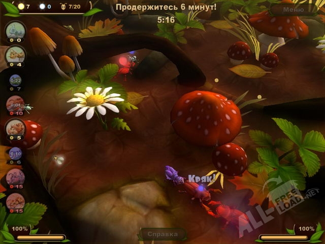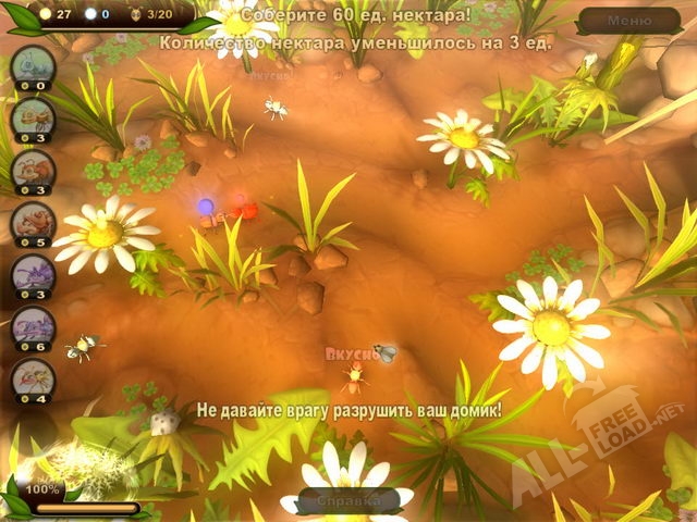 В игре существует несколько видов миссий. В одних тебе нужно будет собирать нектар и некоторые полезные предметы, а в других придется ходить на разведку и вступать в бой, атакуя войска и территории врагов и защищая свои постройки и жуков. Чтобы пройти всю игру, в конце нужно будет истребить всю армию злого Клеща. После выполнения всех миссий тебе полагается звание одного из самых талантливых и храбрых вождей. Если тебе уже не терпится сыграть, тогда тебя ждет игра Война букашек скачать бесплатно которую можно с нашего сайта.