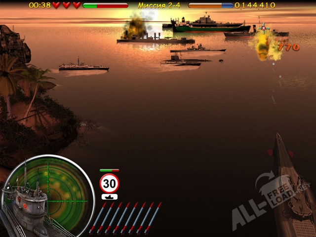 На прохождение каждого уровня тебе дается определенное время, за которое ты должен успеть пройти миссию. С каждым последующим уровнем задача будет усложняться: уменьшается отведенное на выполнение миссий время или увеличивается количество кораблей, которые необходимо уничтожить. Но здесь есть и другие сложности: чем вражеский корабль крупнее, тем он ближе к берегу находится и, соответственно, по ним намного сложнее попасть, чем по тем, что находятся рядом с тобой. Поэтому придется разработать свою идеальную стратегию, чтобы ни один недоброжелатель не улизнул.
