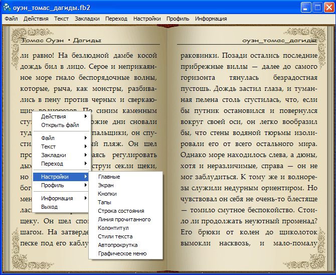 Приложение Alreader не нуждается в инсталляции и не вызывает сложностей в использовании, имеет русскоязычный интерфейс, корректно отражает графические объекты разных форматов и обладает значительным количеством пользовательских настроек (имеет 8 индивидуальных профилей с возможностью переключения между ними).