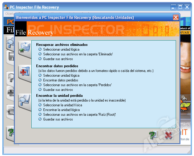 При работе с утилитой следует соблюдать следующее правило: ее нельзя устанавливать на диске, на котором нужно произвести восстановление данных. Установка должна производиться на другом, независимом носителе информации. PC Inspector File Recovery с большой долей вероятности восстановит утраченные данные, если BIOS распознает диск. Еще одно условие успешного восстановления – на носитель информации не производилась запись новых данных.