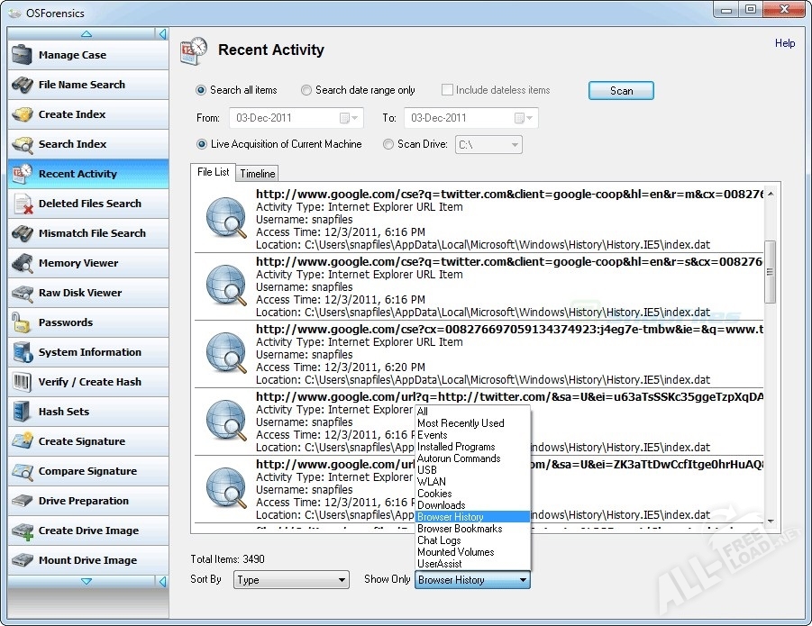 OSForensics – пакет программ, позволяющий производить множество операций по работе с файлами и папками. Кроме восстановления данных, ОСФоренсикс производит сбор средств о системе, является почтовым клиентом, может использоваться как инструмент родительского контроля и эмулятор виртуального привода. Также в программе имеется собственный Интернет-браузер. OSForensics скачать бесплатно можно на этом сайте для Windows.
