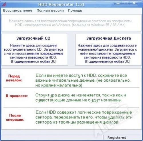 Согласно информации разработчиков, HDD Regenerator восстанавливает 60 процентов всех неисправных винчестеров. При необходимости утилиту можно применять для диагностики носителя информации.
