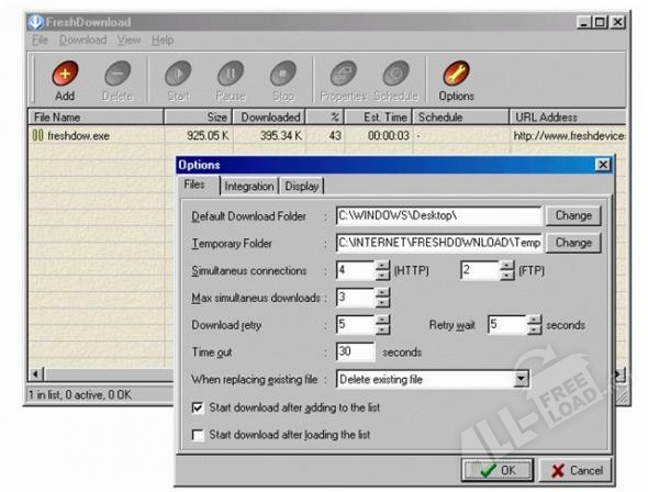Fresh Download является универсальным менеджером закачек, предназначенным для скачивания различного рода файлов из локальной сети или из Интернета. Данная программа работает только на компьютерах и ноутбуках с установленными 32-битными операционными системами, начиная с Windows 95 и заканчивая Windows Vista .