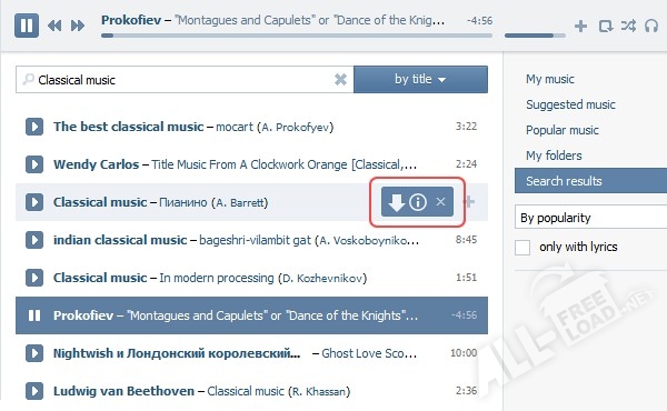 - отображение кнопки «Скачать» в окне с видео, или рядом с музыкой;
