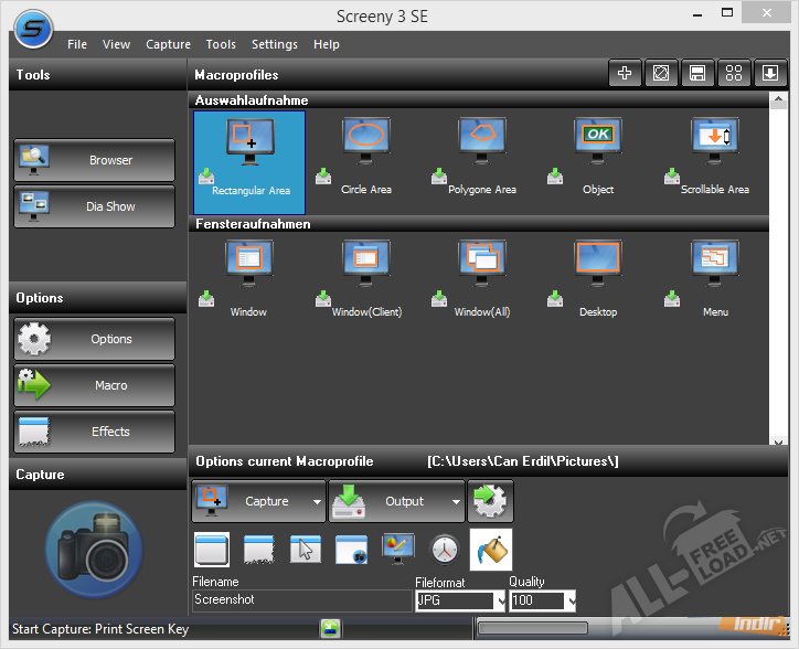 Пользоваться программой очень легко, работает она без «тормозов» и «зависаний». Перед тем, как приступить к снятию скриншотов, необходимо Screeny скачать бесплатно, установить ее и произвести настройки. Включение настроенной программы производится с одной кнопки: после нажатия Prnr Scr происходит «замораживание» картинки, одновременно всплывает окно утилиты. Далее необходимо выделить область для копирования: это либо весь экран целиком, либо его участок. После этого нужно выбрать место сохранения полученного изображения. Его можно не только сохранить, но и передать по электронной почте или на сайт по FTP непосредственно из программы.