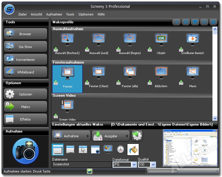 - Высокое качество полученных скриншотов.