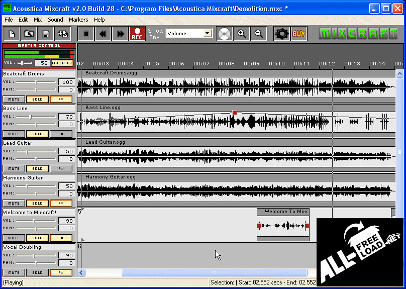 Утилита MixCraft является полноценной компьютерной студией звукозаписи с широким спектром различных функций и настроек. Среди основных программных компонентов стоит отметить наличие хоста для работы с виртуальными инструментами, нелинейного видео-аранжировщика и MIDI-секвенсора. Программа МиксКрафт позволяет осуществлять как простую запись звука, так и полноценную многотрековую запись, однако для этого может понадобиться соответствующая звуковая карта. В числе встроенных инструментов стоит отметить мощный эквалайзер, разнообразные фильтры и ревербератор. Утилита дает возможность конвертировать готовые аудиофайлы в различные форматы, включая WAV, MP3 и другие.