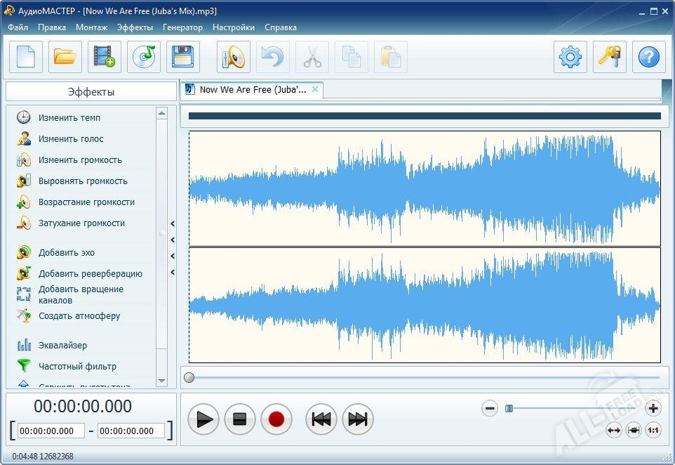 Приложение АудиоМастер отличается от аналогичных программных продуктов высокой скоростью обработки данных и обширной библиотекой различных звуковых эффектов.